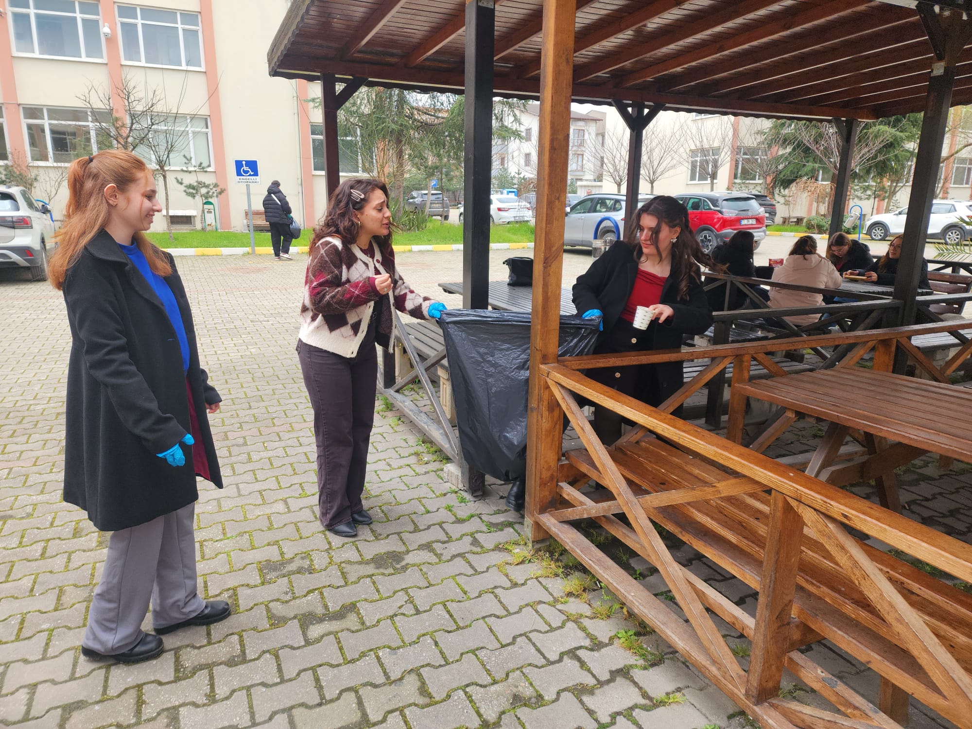 Sosyal sorumluluk bilincine ve toplumsal bilince katkı sunmak amacıyla 25 Mart 2026 Çarşamba günü, Pazarlama ve Reklamcılık Bölümü gönüllü öğrencileri tarafından temiz bir çevre sloganı ile Yalova Meslek Yüksekokulu bahçesinde çevre temizlik etkinliği gerçekleştirildi.